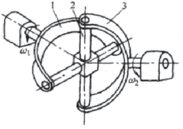 十字軸萬向聯軸器的結構原理如圖2所示,主動軸、從動軸上的萬向節叉1、3中間的十字軸2分別以鉸鏈連接,當兩軸有角位移時,萬向節叉1、3繞各自軸線回轉,而十字軸則做空間運動。